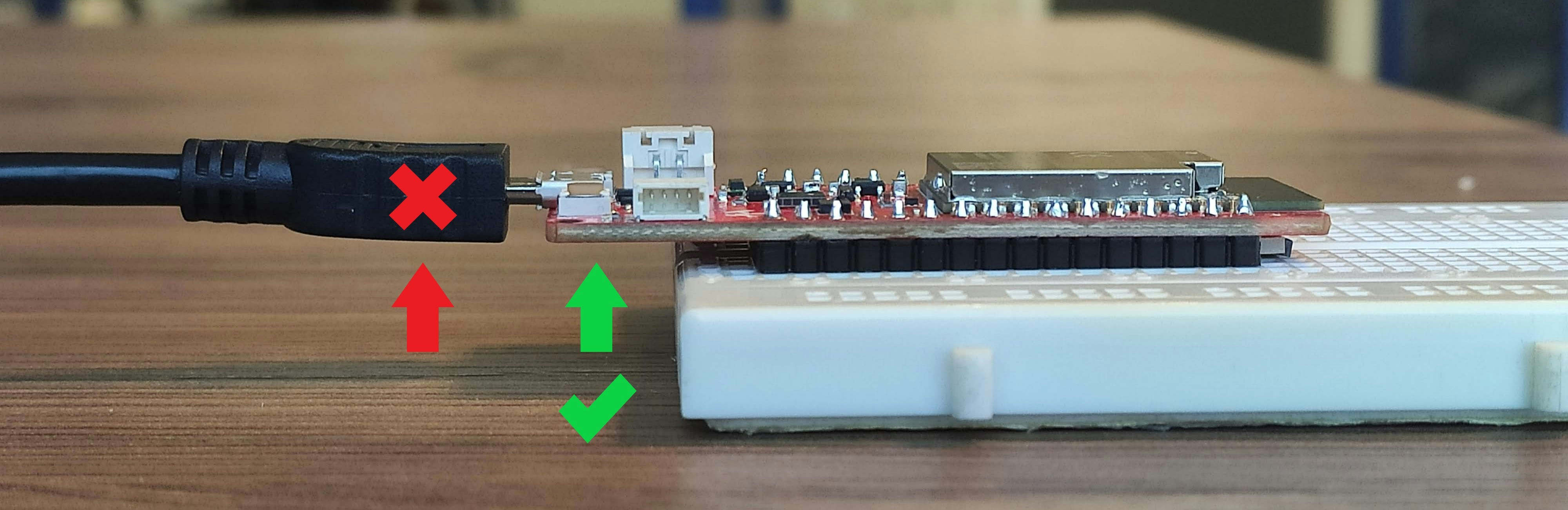 Breadboard (devre tahtası) veya benzeri bir ünite üzerine yerleştirilmiş kartınızı, bulunduğu yerden çıkartırken USB portunun hasar görmemesi için görseldeki gibi dikkatlice kenarlarından tutarak çıkartmanız gerekmektedir.