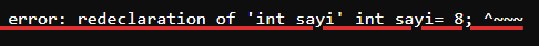 - Aynı .ino veya .cpp dosyasında bir değişkeni tekrar tanımlamak.